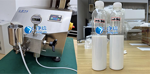 應(yīng)天津大學(xué)浙江紹興研究院客戶(hù)需求,對(duì)樣品油水混合乳液開(kāi)展實(shí)驗(yàn)操作。此次實(shí)驗(yàn)是在上海松江工廠(chǎng)科研室開(kāi)展進(jìn)行的,選用了凈信高壓納米均質(zhì)機(jī)JXNANO-15來(lái)對(duì)樣品油水混合乳液進(jìn)行實(shí)驗(yàn)操作。