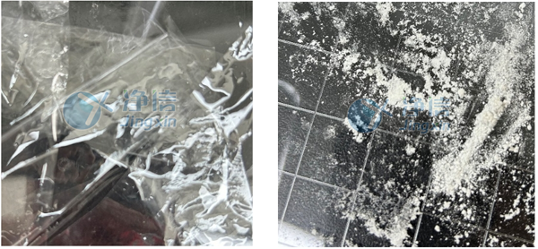 經全自動浸入式液氮冷凍研磨儀處理后的PVA和絲素蛋白在肉眼觀察下,呈現細膩的狀態。通過顯微鏡觀察,和以前用舊款儀器研磨的樣品對比發現,無論是在低倍還是高倍狀態下,通過凈信研磨儀處理的樣品的顆粒細膩程度都較優。舊款儀器處理的樣品在高倍鏡下觀察還存在一定程度的組織結構,而凈信研磨儀處理的樣品已成均勻顆粒狀。
