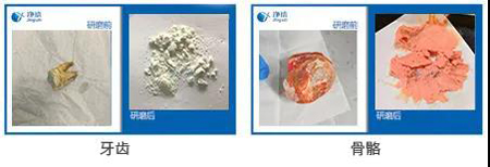 1、法醫骨骼牙齒粉碎儀對樣品的研磨實驗案例效果圖