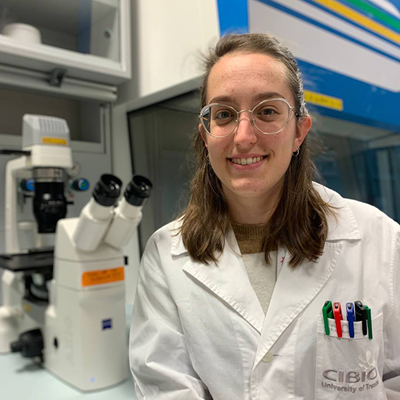 畢業(yè)后,她通過(guò)Erasmus+計(jì)劃在國(guó)外度過(guò)了一段時(shí)間,運(yùn)用她在類器官方面的技術(shù)技能,研究常染色體隱性原發(fā)性小頭畸形患者的異常大腦發(fā)育。2023年夏天,她在特倫托大學(xué)獲得了生物分子科學(xué)博士學(xué)位(以優(yōu)異成績(jī)畢業(yè));該項(xiàng)目的主要目標(biāo)是直接從原發(fā)性腫瘤樣本中創(chuàng)建用于兒童腦癌的患者和異種移植衍生的類器官 (PDO和PDXO)。通過(guò)這種新模型,她通過(guò)評(píng)估PDO對(duì)常規(guī)治療方案的反應(yīng),驗(yàn)證了PDO在更多轉(zhuǎn)化應(yīng)用方面的潛力。Chiara對(duì)類器官技術(shù)在癌癥領(lǐng)域的應(yīng)用非常著迷,并非常致力于兒童癌癥研究。