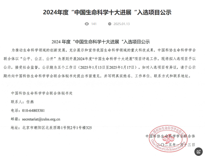 重磅|凈信組織研磨儀助力科學家獲得2024年度中國生命科學十大進展”