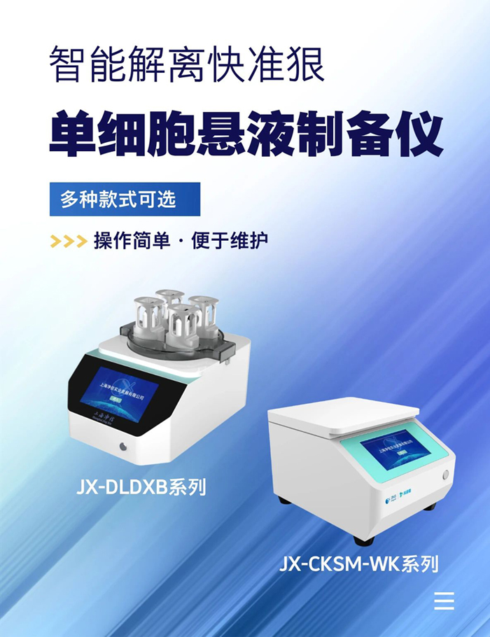1. 細(xì)胞活性高:傳統(tǒng)的細(xì)胞分離方法往往會對細(xì)胞造成較大的損傷,導(dǎo)致細(xì)胞活性降低。而單細(xì)胞懸液制備儀采用溫和的解離方式(JX-CKSM系列:磁珠+酶 JX-DLDXB系列:雙向機(jī)械切割+酶),能夠有效地保護(hù)細(xì)胞的活性,讓細(xì)胞在分離后依然保持良好的狀態(tài)。