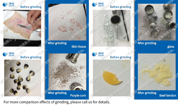 By connecting to the innovative product of Shanghai Jingxin Technology?, the air refrigeration instrument, low-temperature operation can be realized, and it has the functions of dry grinding and wet grinding at the same time. It meets the application of heat-sensitive materials and biological fields, and is suitable for plant, animal, bacterial and yeast samples. Designed by DIN method, low noise, easy to use, stable performance, the grinding process of samples is always at low temperature, so it can be satisfied with the application of heat-sensitive materials and biological fields, and can be used for soft textiles, PCB boards, paper, soil, etc. And medium-hard samples for regular crushing