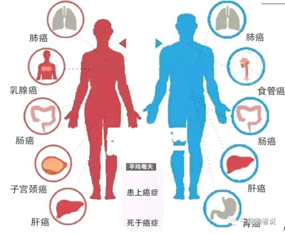 在我國,癌細胞頻繁“光顧”的人體組織,位居男性發病率前十位的分別是,肺、胃、肝、食管、大腸癌、膀胱、胰腺、腦、淋巴、腎;女性為肺、乳腺、大腸、胃、肝、食管、卵巢、宮頸、胰腺、腦?!翱梢哉f,這十種腫瘤占據了所有腫瘤類型的80%以上。