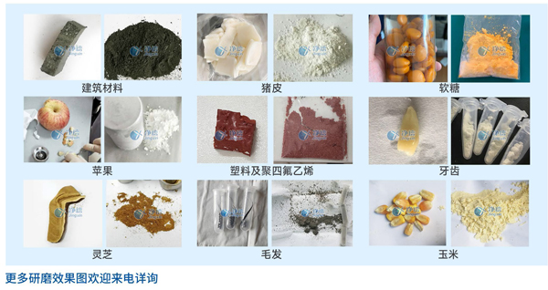 該產品對熱敏感性物質,中西藥、動植物、橡膠、塑料、(根、莖、葉、花、果、種子、大腦、心臟、肺、胃、肝臟、胸腺、腎臟、腸、淋巴結、肌肉、骨骼、真菌、細菌、食品、藥品、煤炭、油頁巖、蠟制品、PE、PS、紡織品、樹脂)等及在常溫下呈韌性,無法粉碎的物質。