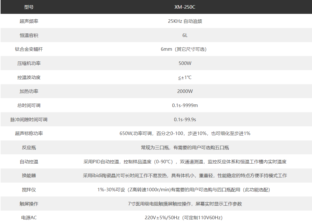 聚能式恒溫超聲波萃取儀XM-250C技術(shù)參數(shù):