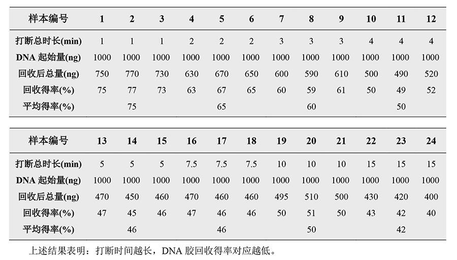 3、不同打斷時(shí)長下的回收得率: