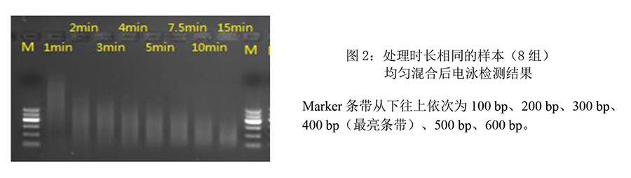 4、相同處理時(shí)長的樣本混合后,瓊脂糖凝膠電泳檢測結(jié)果: